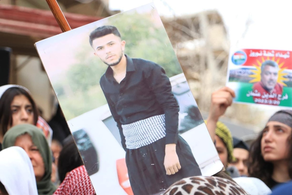 The burial ceremony of the victims on March 21, 2023 turned into a mass public protest in Jindires and in other areas in Afrin, where the protestors carried olive branches and the victims’ bodies that were wrapped in the Kurdish flag and raised banners reading: “Five years of injustice, oppression and demographic change. No to killing Kurdish civilians. We demand an end to the crimes and finding radical solutions for the region.” The protestors called for an international protection and putting an end for the violations the Turkish-backed opposition SNA are committing.